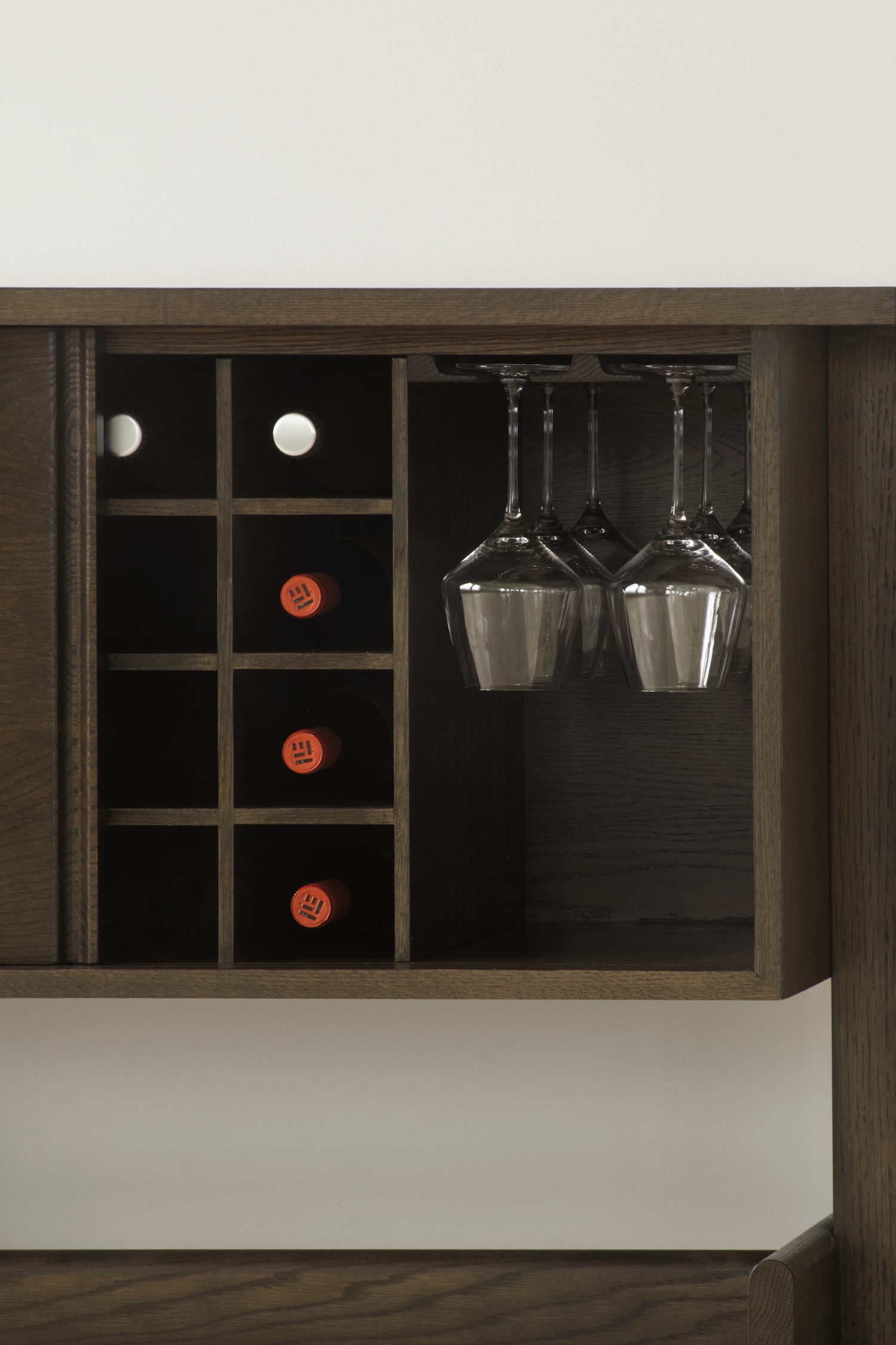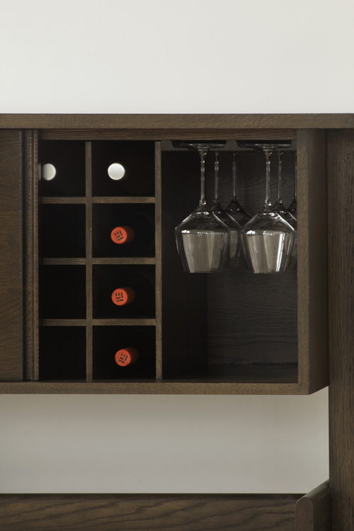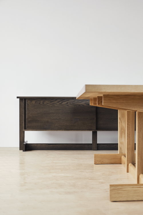 The Land Table is available in three lengths, 75 inches, 99 inches, and 126 inches, offering versatility for various spaces. The credenza comes in two widths, 66 inches and 85 inches, with optional bottle and glass storage. Both beautiful and useful, the credenza works well in dining and living spaces as a sideboard or cabinet to display decorative objects, while discreetly storing household items such as platters, wine bottles, stemware, keepsakes, and more. The console is 48 inches wide and presents slightly taller and thinner than the credenza - making it a welcomed object in hallways and entries. All pieces are available in white oak and umber-stained oak finishes.